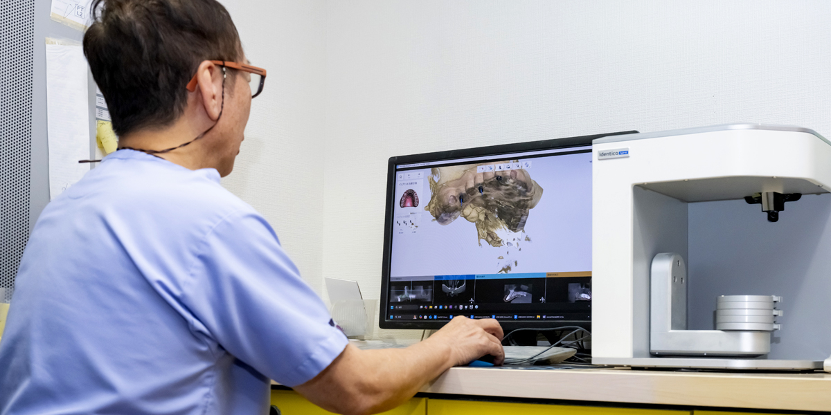 当院には歯科技工所が併設されており、歯科技工士と歯科医師の連携を密に取りながら早く・精密な補綴物を製作しています。