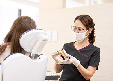 当院では患者様のお口の中の状態や状況、治療期間や費用など様々なご希望をふまえて一人ひとりに合った治療法を一緒に考えご提案致します。