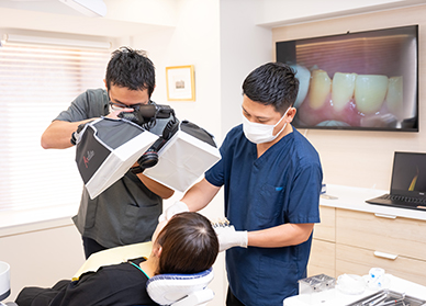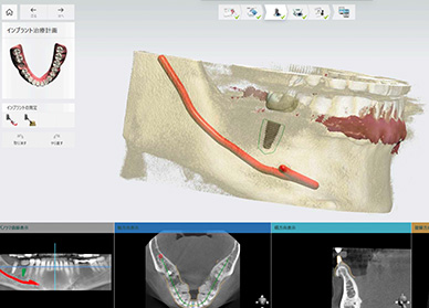 歯科用CT・レントゲンにて口腔内診査を行います。骨の状態や神経などとの位置関係を確認します。