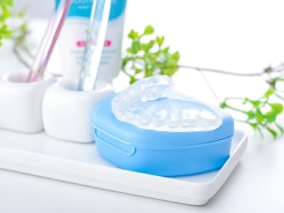 ご自宅で行うホワイトニングです。ホワイトニング剤を注入したマウスピース(歯科医院にて作製)を、毎日一定時間装着して歯を徐々に白くします。就寝時など好きな時間に行えます。